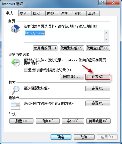 在“常规”选项卡浏览历史记录一栏,单击“设置”按钮。
