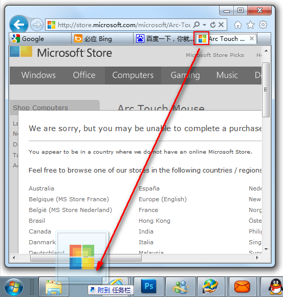 如果你有重要的网站希望能立即开启,那么你只要用滑鼠拖曳网址前方的图示到任务栏,就可以固定在任务栏了,下次只要按一下任务栏上的图示即可开启该网站。(只有Windows 7才适用)