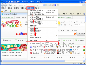 1、打开IE浏览器,点击“工具”,弹出的下拉选修框点击“Internet选项”。