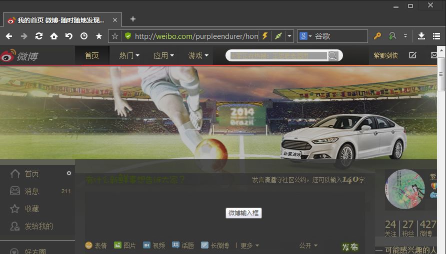 Maxthon3.5.2.2000cn夜间模式下的微博输入框显示效果较Maxthon3.5.2.1000cn有所改善: