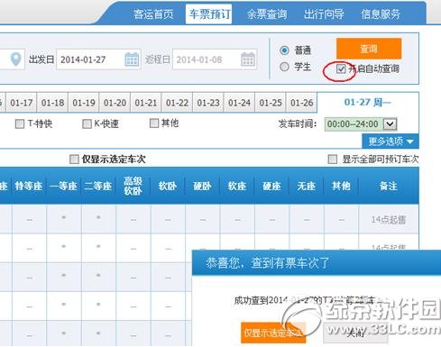f) 在抢票时间点过5分钟时或10分钟时网站肯定就不忙了,此时如果没有票了,也有希望,勾选自动查询,等有退票的人或超时未付款的人把票掉出来,至少等50分钟,因为最多45分钟没有付款的人会被自动取消票。