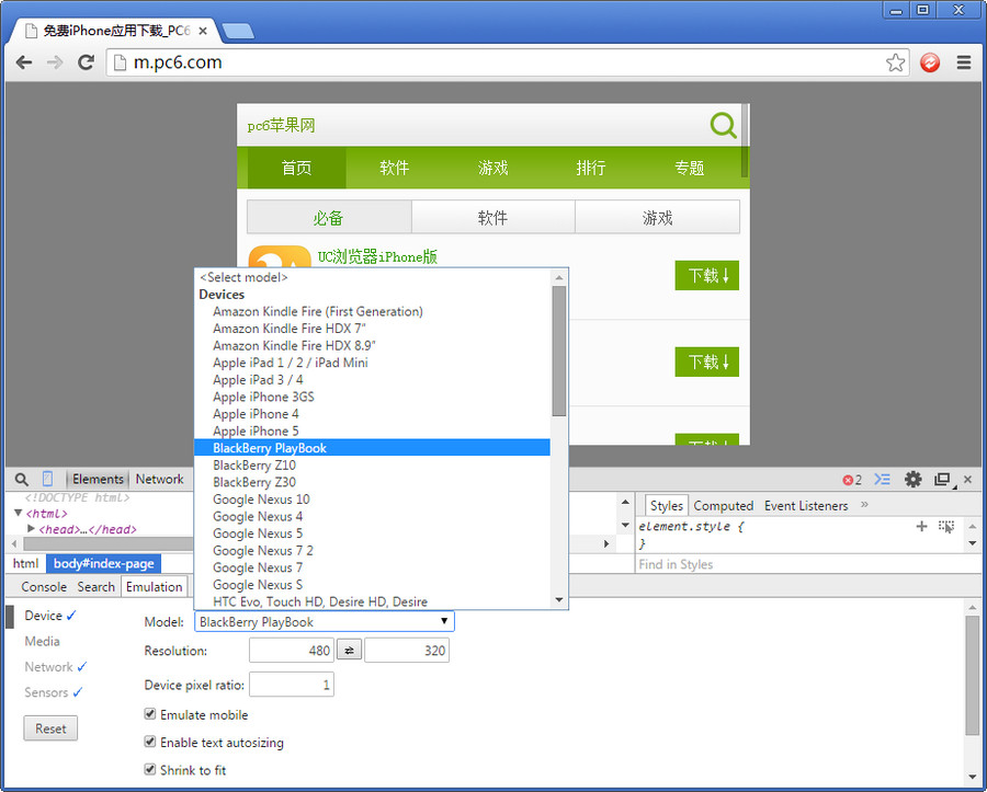 由于工作原因需要经常测试页面在不同平台间的效果,谷歌Chrome浏览器,可以很方便地用来当手机模拟器。在 PC 上使用chrome 谷歌浏览器模拟手机浏览器是一件非常简单的事情,最新 chrome 浏览器都提供了这项功能,可以模拟 anroid 、iphone、meego、黑莓等等多款手机,还有多款手机浏览器,如chrome、firefox以及手机系统自带的浏览器。