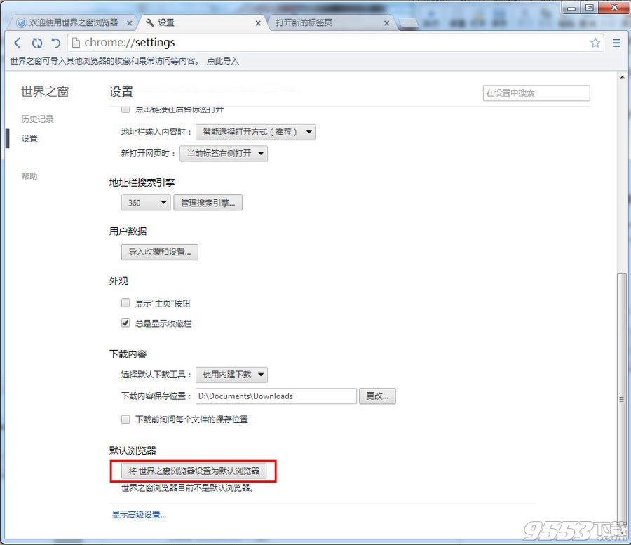 世界之窗浏览器怎么设置默认浏览器?