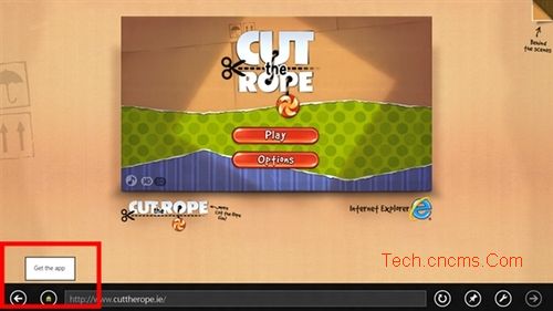 和iOS及其他通过注册协议前缀调用第三方应用类似,如果在Windows 8 Style IE10中浏览在Windows应用商店有应用的网页时会提示“获得该应用”按钮,点击即可跳转到微软官方的Windows应用商店下载该应用。即用户可以很方便的在IE中发现、下载和启动适用于所访问网站的Windows 8 Style风格应用程序。