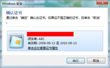 这时,再打开IE8来登录网上银行(这里就以登录农行为例),点击“证书登陆”,此时会弹出“正在平铺证书”的对话框,然后弹出“Windows安全”确认证书的对话框,在对话框中就可以看到你的证书了,点击“确定”使用该证书来登录网上银行。成功登陆了网上银行后你就可以进行各种在线的银行交易了。