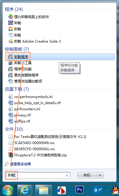 1、单击“开始”按钮,在搜索框中输入“卸载”,然后在搜索结果中单击“卸载程序”。