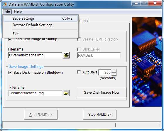 1、我们开启Dataram RAMDisk后切到「Load and Save」,点击「Save Disk Image Now」