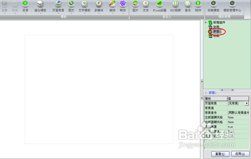 我已经插入了一个模板,在软件右边单击版面前的加号,双击对应的文本或是图片,就可以进去把模板里面的图片和文本换为自己的了,如图所示: