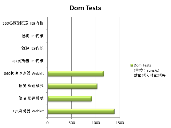 而在考察执行效率的Dom Tests和HTML 5测试中,测试对象的角逐主要集中在对Webkit核心的优化上,其中360极速浏览器和QQ浏览器脱颖而出,分别摘得Dom Tests和HTML 5测试的桂冠。