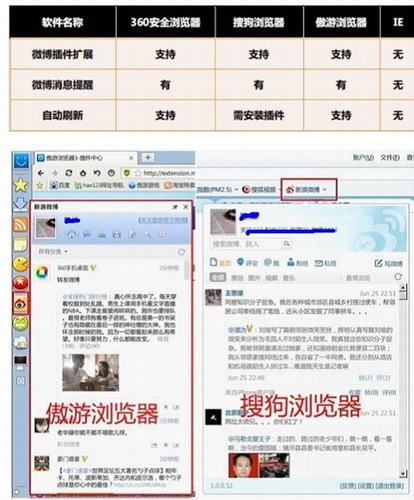 本测试主要查看各浏览器对微博服务的扩展支持,包括微博插件、新消息、评论提醒等。