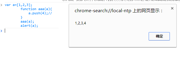 1 var a = 5; 2 var b = a; 3 b +=3; 4 alert(a);//5 5 6 var a = [1,2,3]; 7 var b=a; 8 b.push(4); 9 alert(a);//[1,2,3,4];