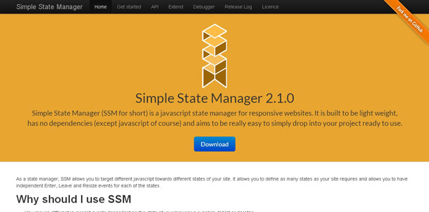 JavaScript State Manager是一种轻量级的、易于使用的状态管理器,主要用于响应式网站。它不需要任何的JavaScript框架。你可以定义断点将运行在当前断点的JavaScript代码打包在一起。