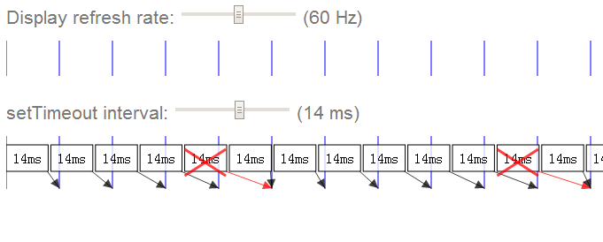 60fps是动力也是压力,因为它意味着我们只有16.7毫秒(1000 / 60)来绘制每一帧。如果使用setTimeout或者setInterval(以下统称为timer)来控制绘制,问题就来了。