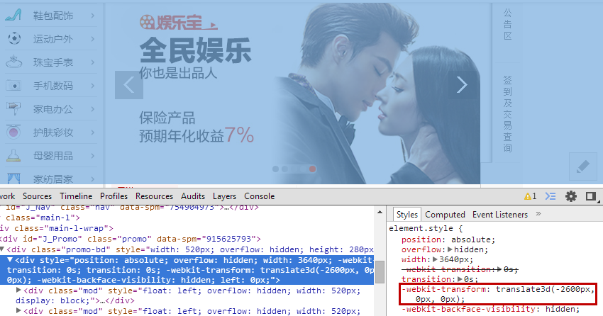 最后再看看淘宝首页,不仅仅只有焦点图才拥有了独立的layer: