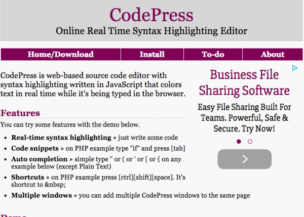 官方网站:http://codepress.sourceforge.net/
