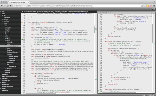 Scripted是一款快速又小巧的代码编辑器,最初就专注于JavaScript的编辑。Scripted也是一个基于浏览器的编辑器,并且编辑器本身就是从在本地运行的Node.js服务器实例上提供的服务。