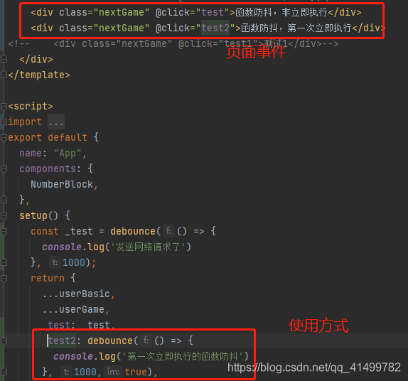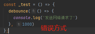 在这个地方相信好多人的使用方式,会直接定义函数,然后在函数中使用debounce的 ,这样的使用方法是错误的。