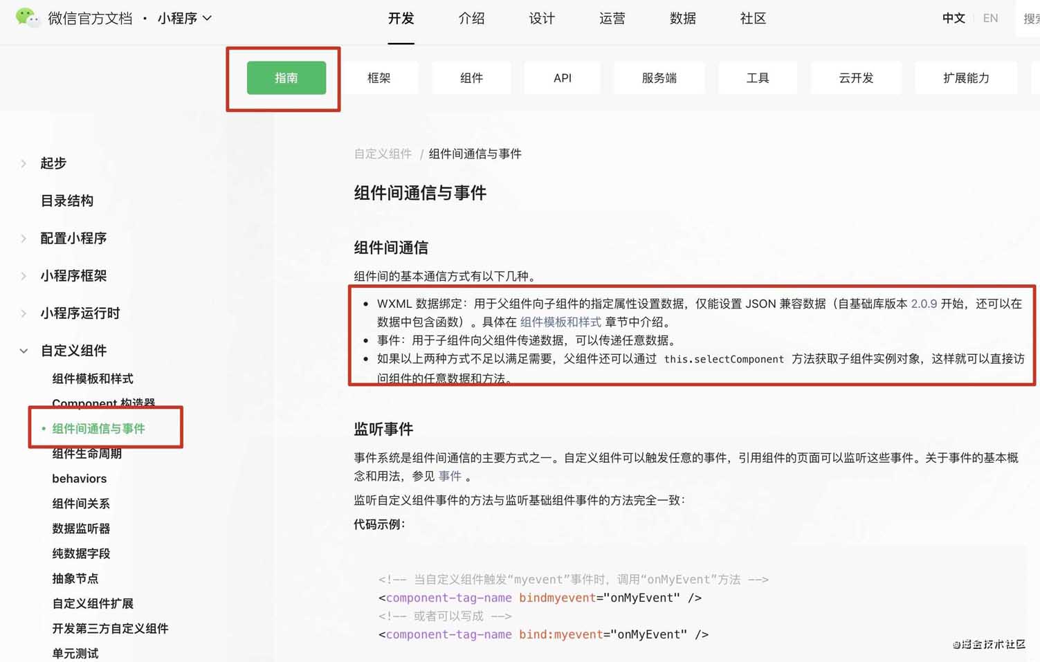 这里咱们就可以去微信小程序的官方文档看看了,毕竟官方文档是个好东西嘛,找到下图所示的地方:
