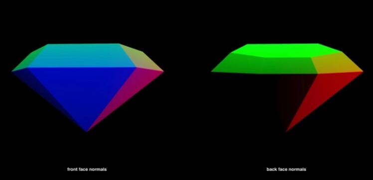 在一个片段着色器中,我们需要几何图形的正面和背面的世界法线。由于我们不能同时渲染两侧,因此需要首先将背面法线渲染为纹理。