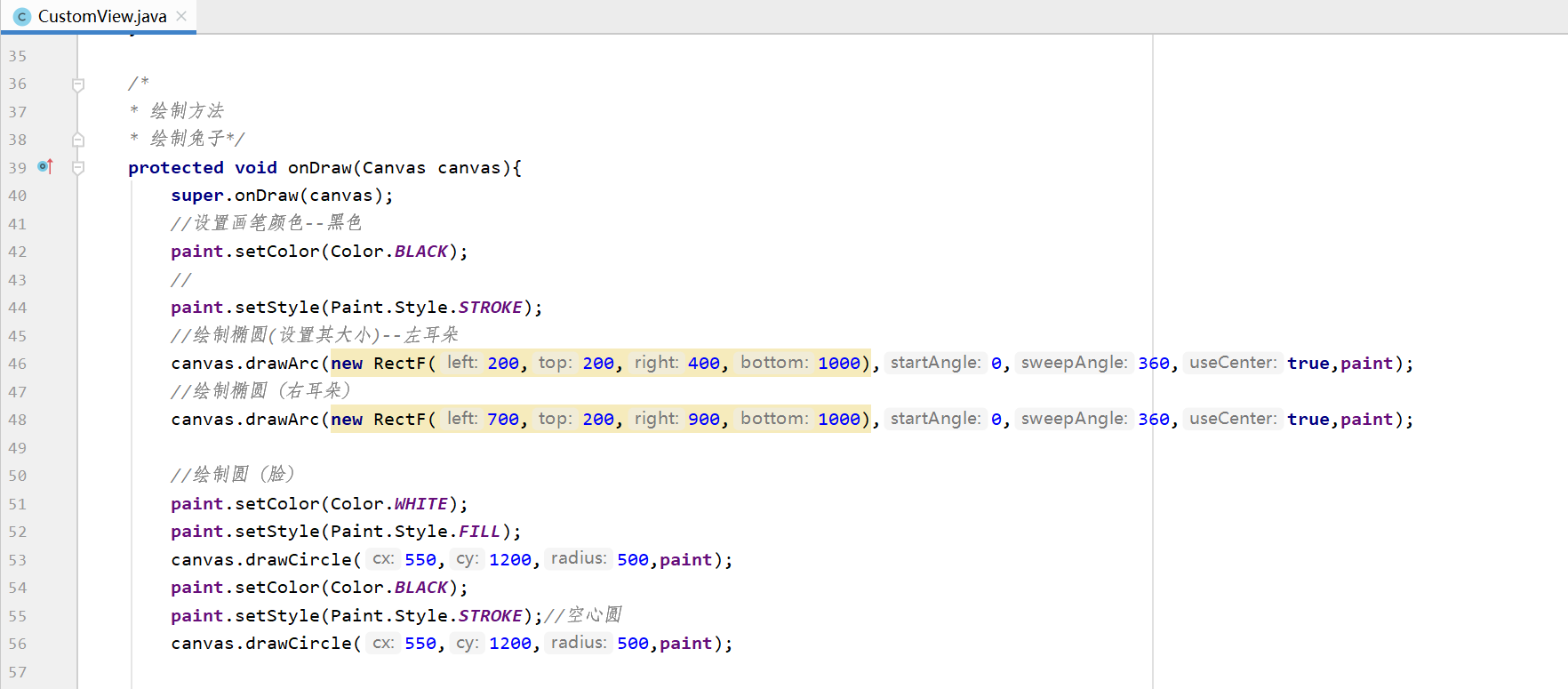 canvas.drawArc(new RectF(700,200,900,1000),0,360,true,paint);
