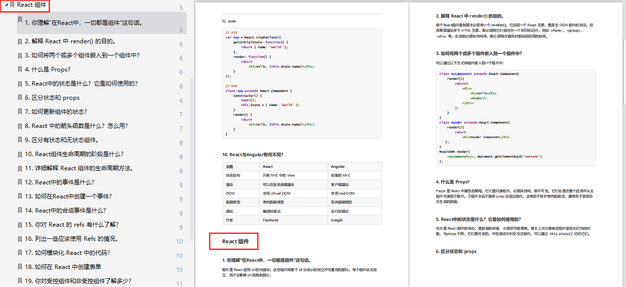 React面试题总结所有内容都已经整理成PDF文档,需要可以点击这里免费领取,还包括前端CSS面试题文档,JavaScript面试题文档,Vue面试题文档,大厂面试题文档,都可以免费领取!