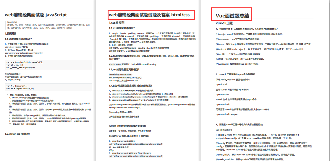 需要可以点击这里免费领取,还包括前端CSS面试题文档,JavaScript面试题文档,Vue面试题文档,大厂面试题文档,都可以免费领取!