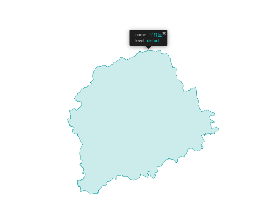 上图是选中北京市-平谷区的的地图数据,可以看到是没有乡镇数据的,把数据渲染到页面上是