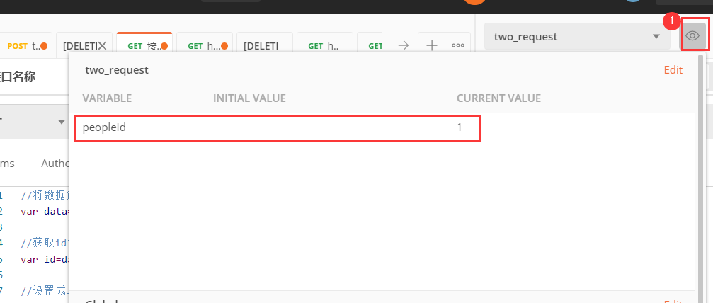 4.在第二个接口,用{{peopleId}}就可以获取peopleId值