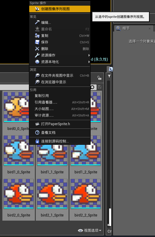 2. 基于一系列选中的 sprite 自动生成Flipbook。