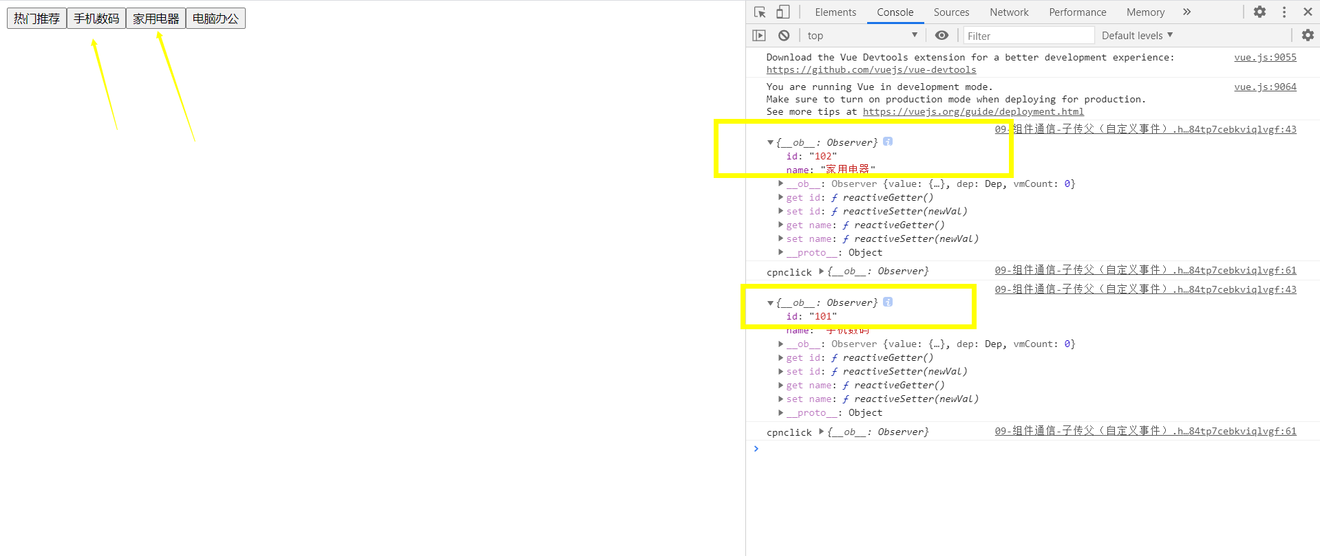 - 当子组件需要向父组件传递数据时,就要用到自定义事件