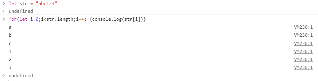 因为字符串是有下标的,也就是说Js中的字符串跟数组很像,可以通过下标的方式去访问其中的每一个值,而for循环就是通过递增下标,去对应的数据结构通过下标访问其中的值,但这里不推荐用for循环遍历字符串,如图: