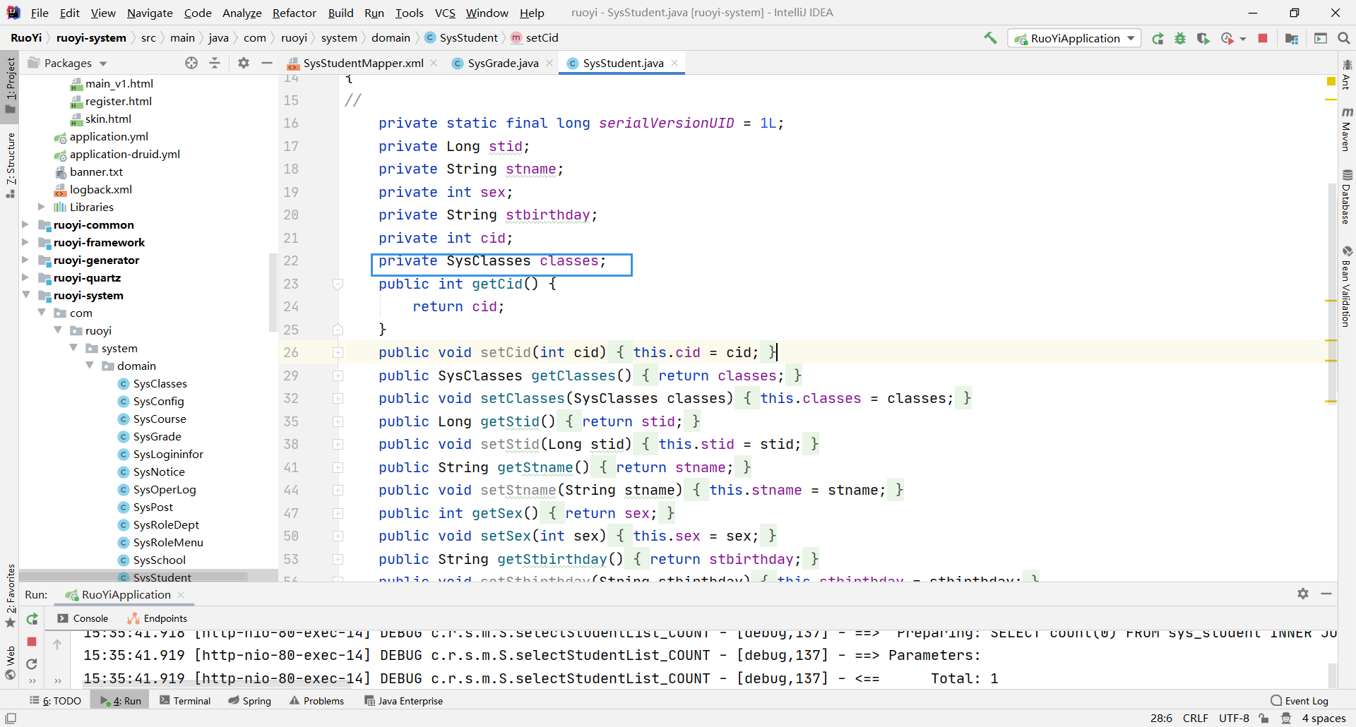 classes实体类