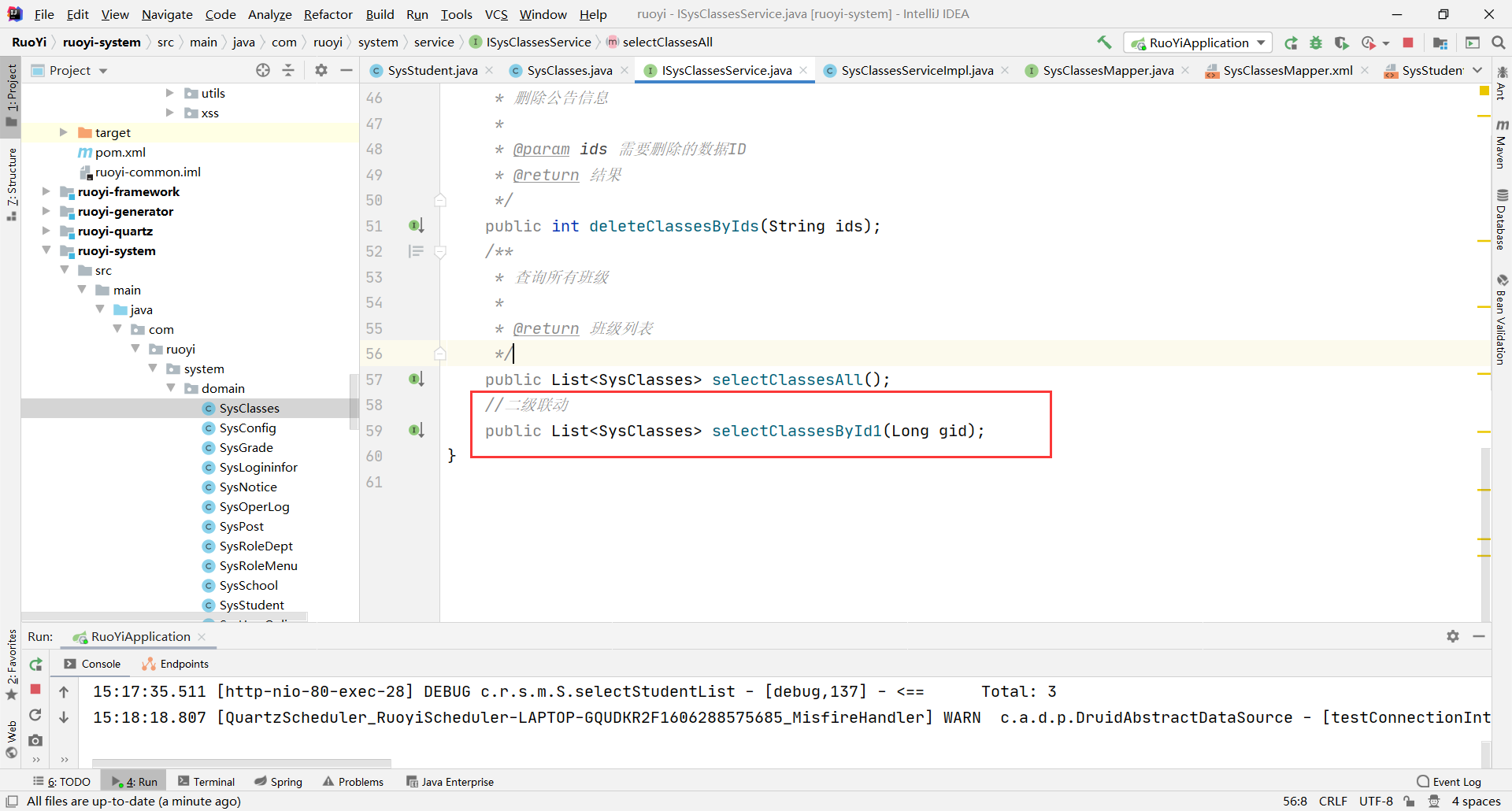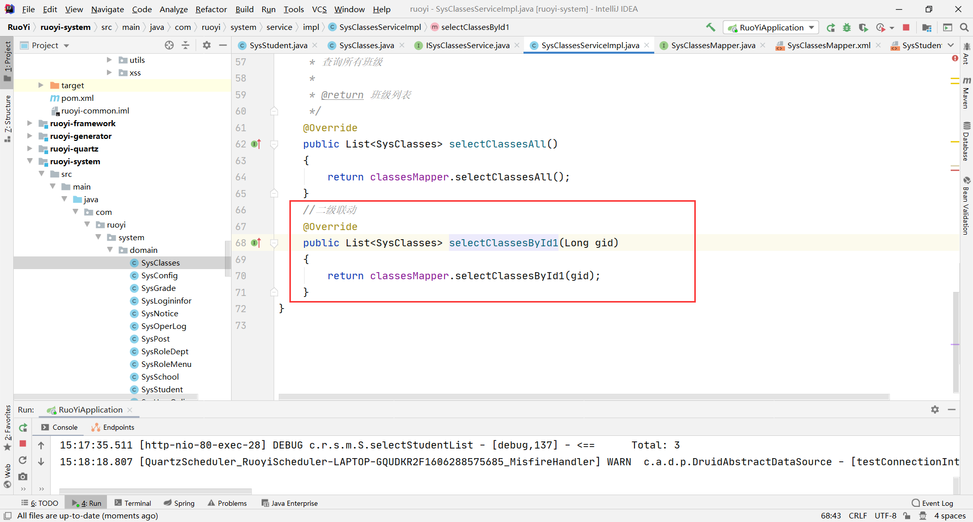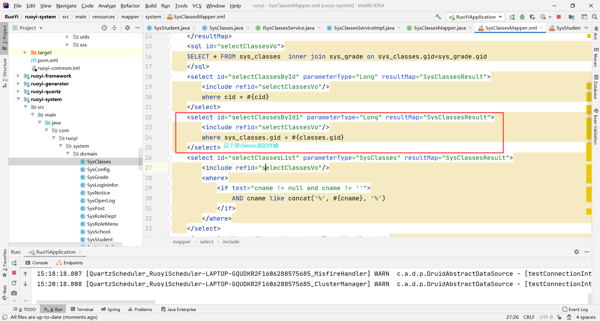 List<SysClasses> list1 = classesService.selectClassesById1(gid);
