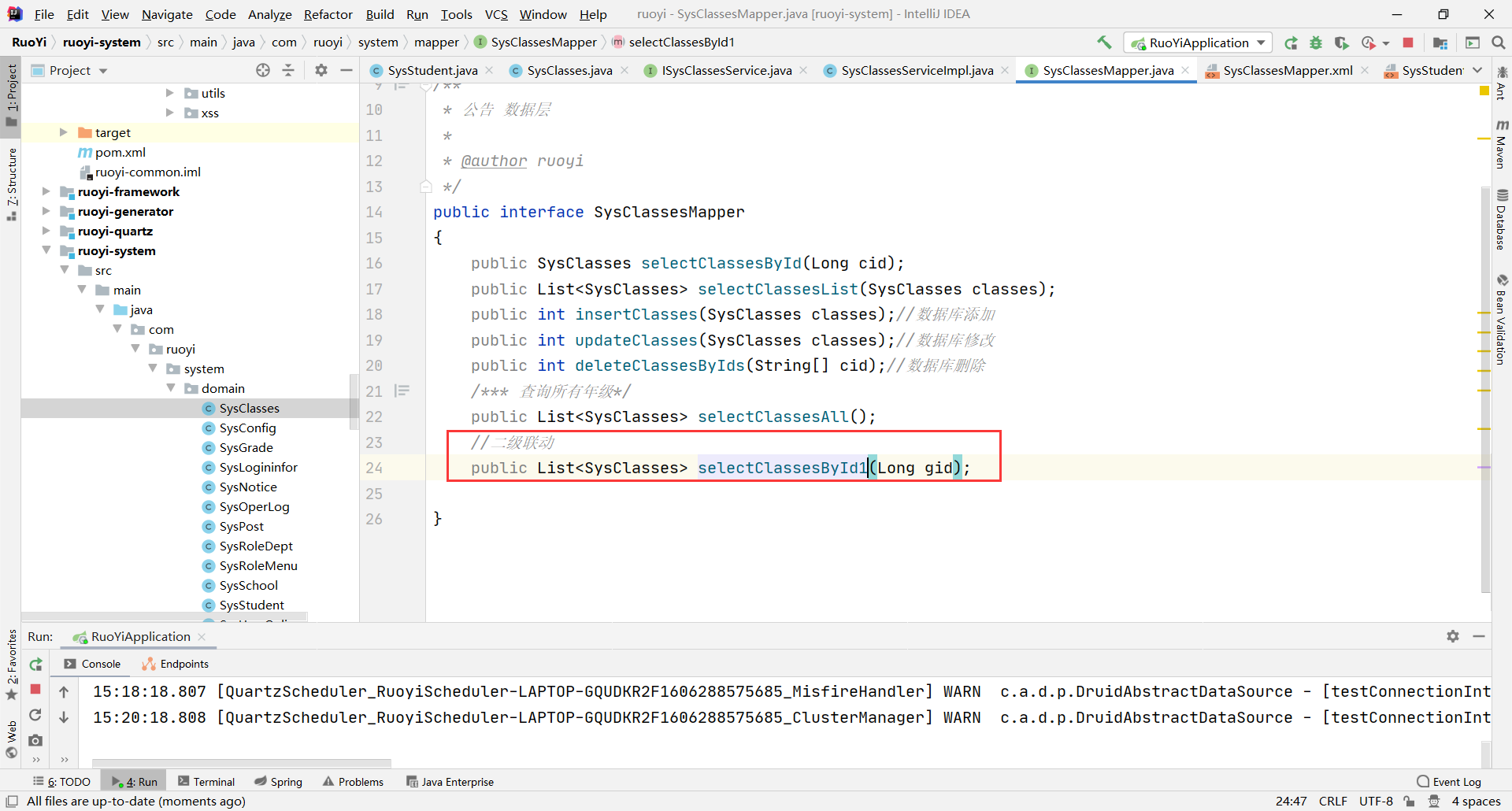 public List<SysClasses> selectClassesById1(Long gid)