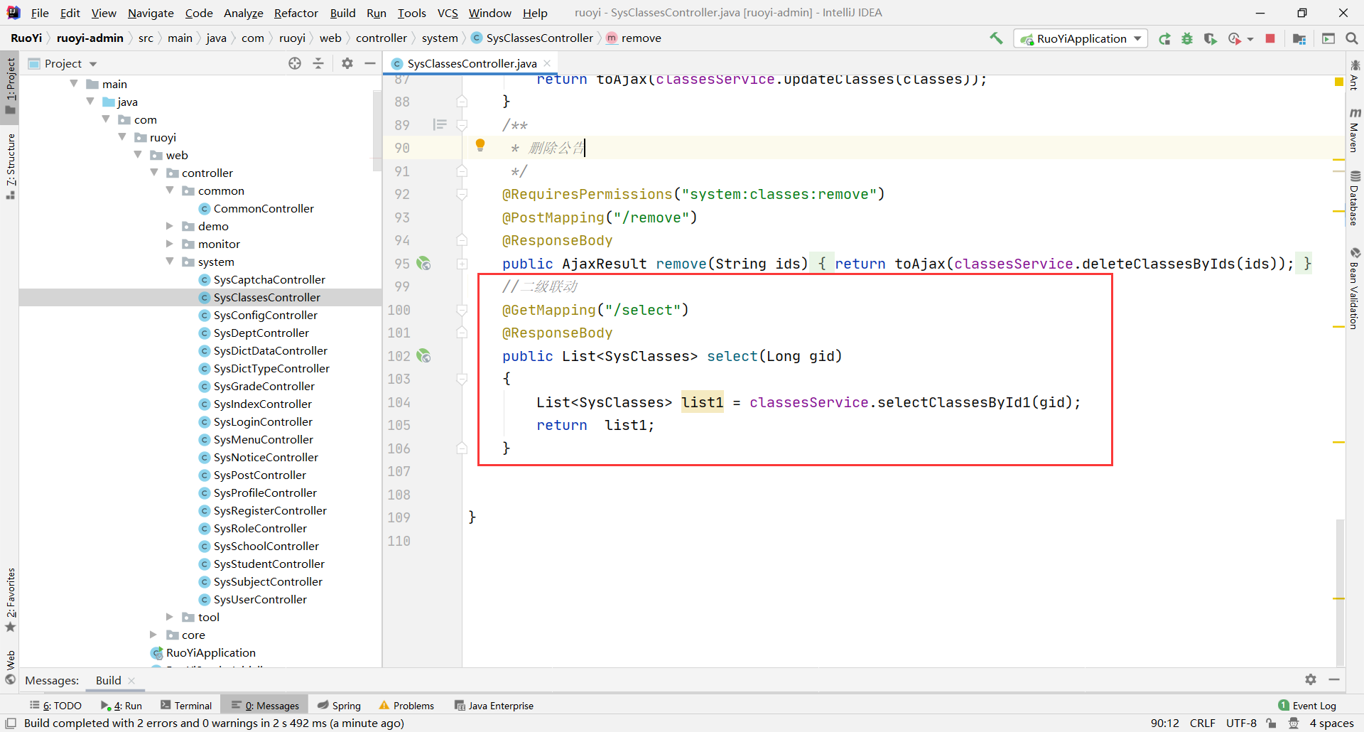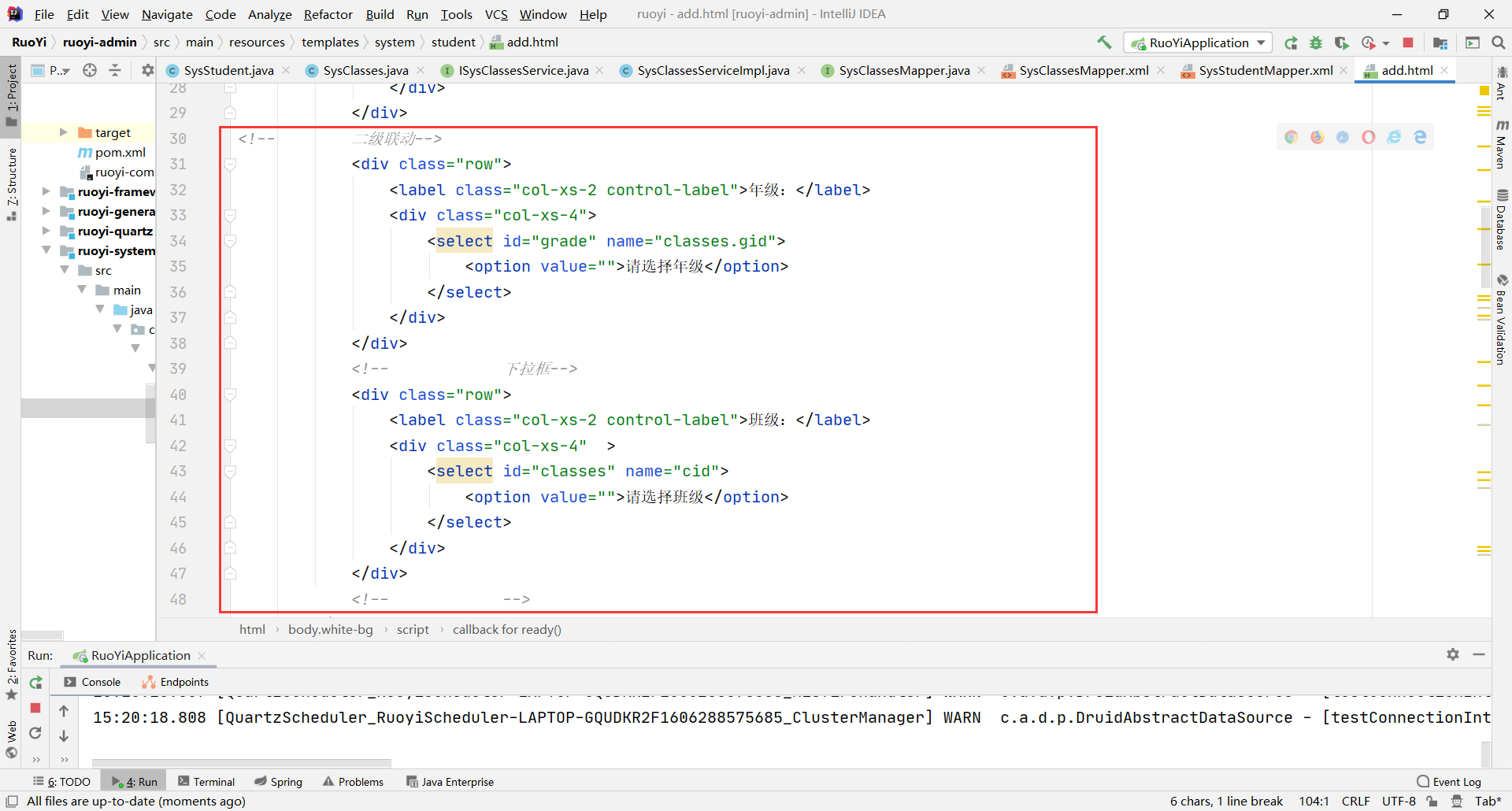 若依--实现--二级联动