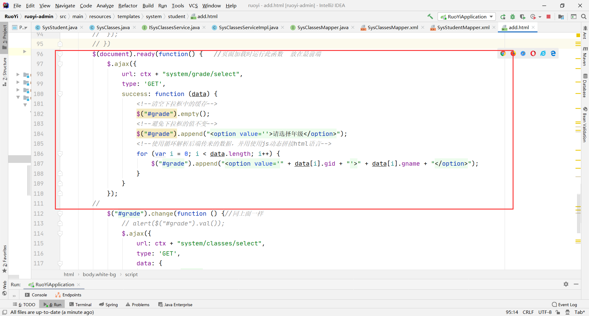 $("#grade").change(function () {//同上面一样