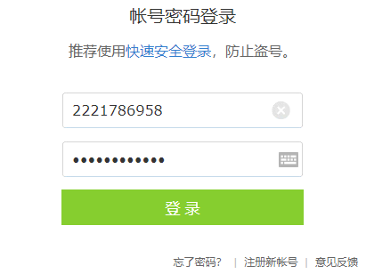 呐,这里是账号和密码,可是我们的密码是黑色的圈圈,怎么也想不起来,怎么知道黑色的圈圈是什么呢?
