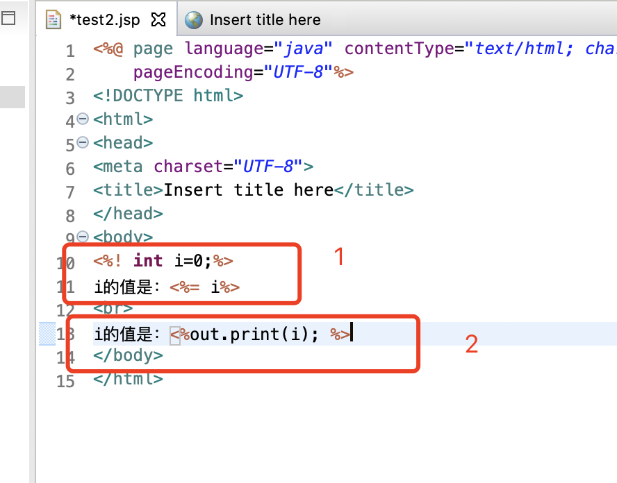 可以看到这两个方法输出的结果都是一样的,但是方法1更加清晰明确,特别是HTML代码和JSP代码拼接生成页面完整信息。