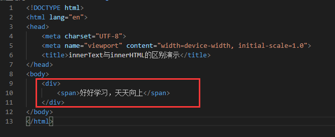 由此可见,innerText属性只获得元素对象内的文本内容