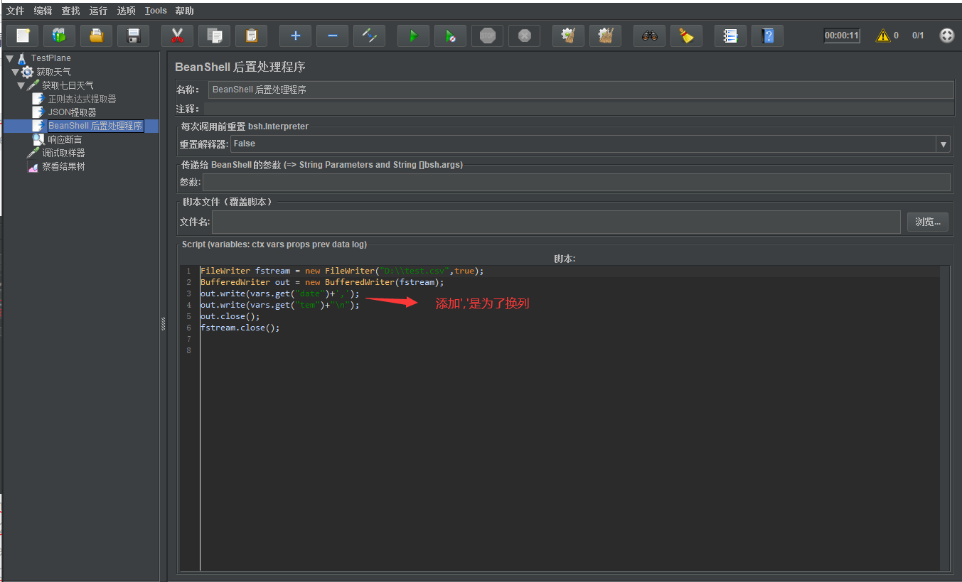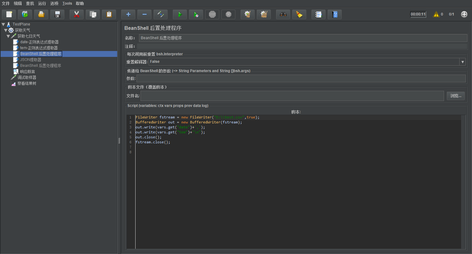 添加BeanShell 后置处理程序,与方法一中的脚本代码相同;