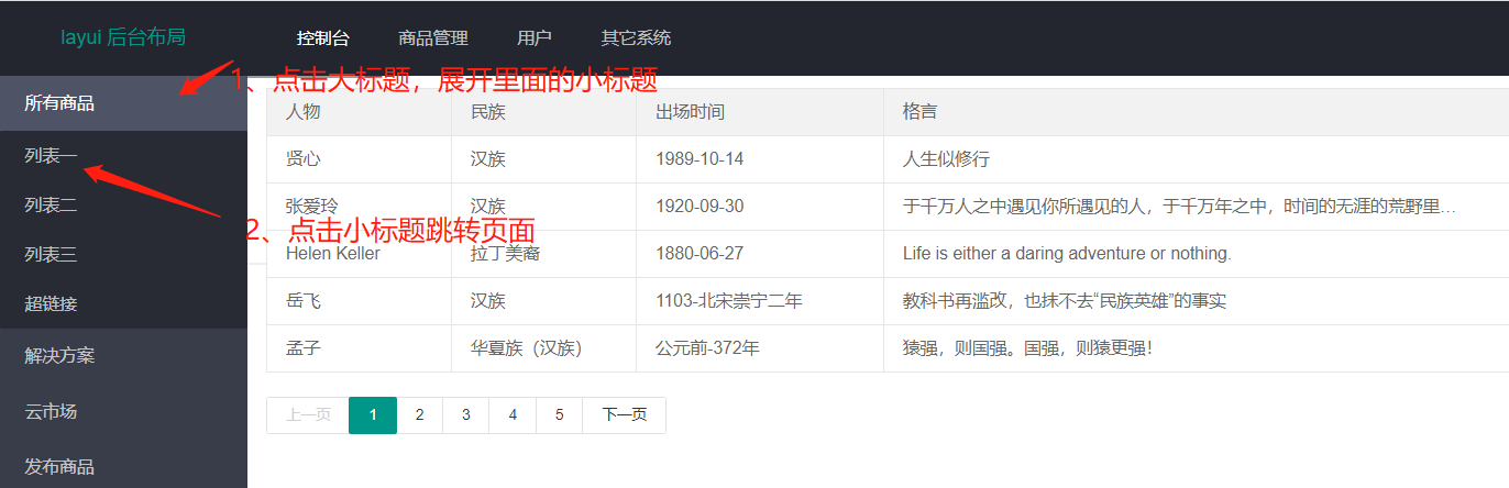 // 点击左侧列表大标签下的小标题