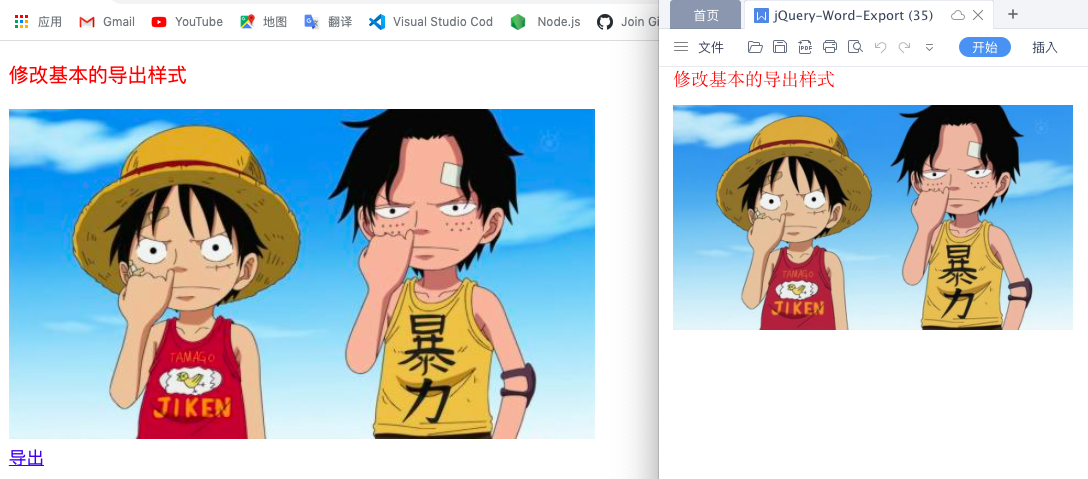 以上便实现了基本的页面导出word文档,接下来将插入一张图片并对其它要点做演示。