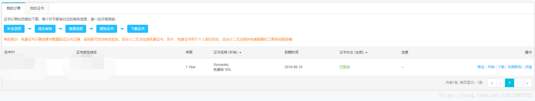 1.首先是去阿里云上购买ssl,当然有免费版,但是只能支持一个域名,而且同一个域名只能购买20个证书,各个明细子域名都算一个域名