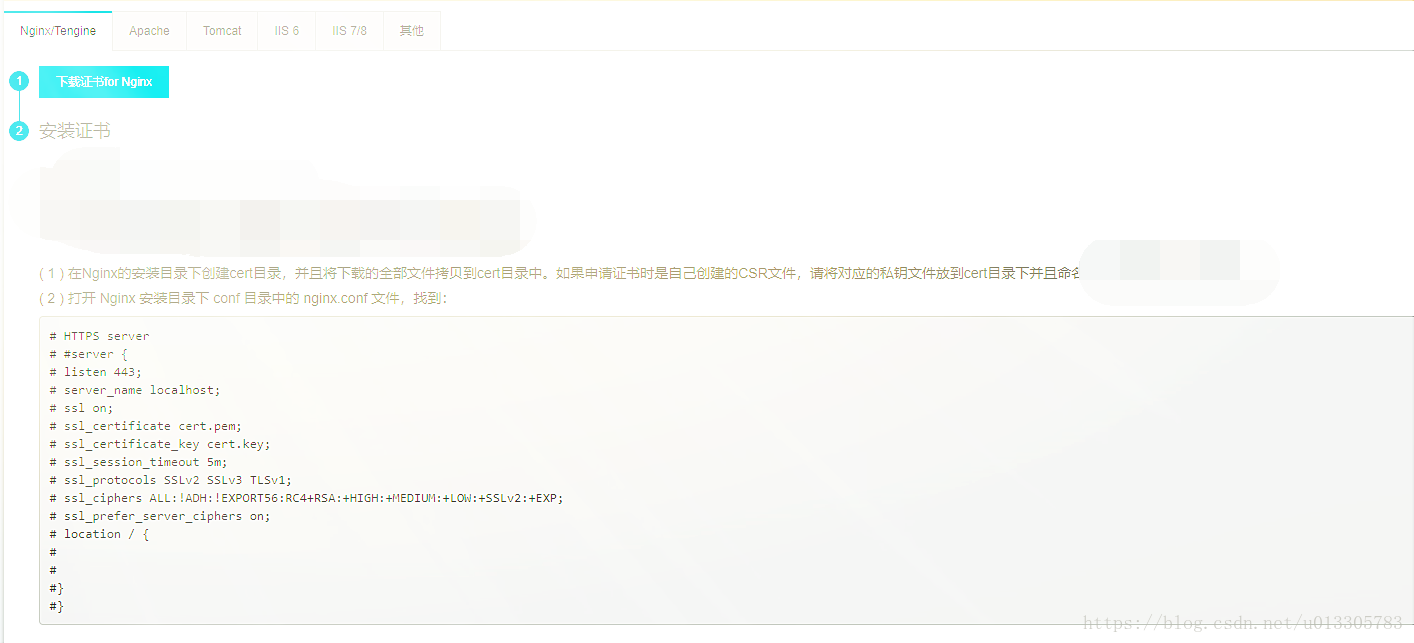 4.然后需要去所在服务器上配置key和pem,当然我们这里选择的是自动生成key,如果有必要可以自己去制作key,按照阿里云上的步骤操作就是了。如下所示: