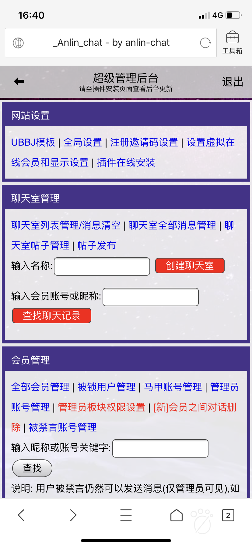 支持邀请码/邮件/等注册方式 自定义模板与ubb创建个性化页面会员管理,帖子管理,虚拟在线会员设置,马甲账号设置/马甲账号群发功能齐全