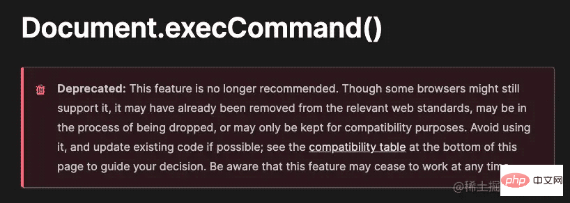此方法虽然警告被废弃,不再属于 web 标准,但历史因素较多,相信浏览器还会支持很久。