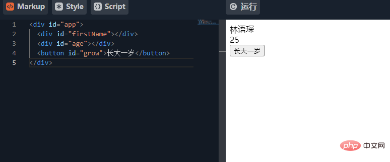 }这样就实现了数据驱动,只要任意对p_data的属性值进行修改,DOM的内容就可以直接变化了: