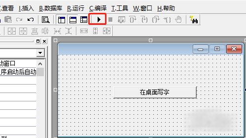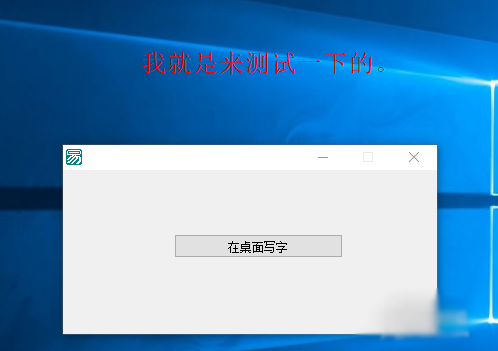 6、我们点击运行按钮,看是否成功。成功显示后,这样一个简单的在桌面写字功能就完成了。