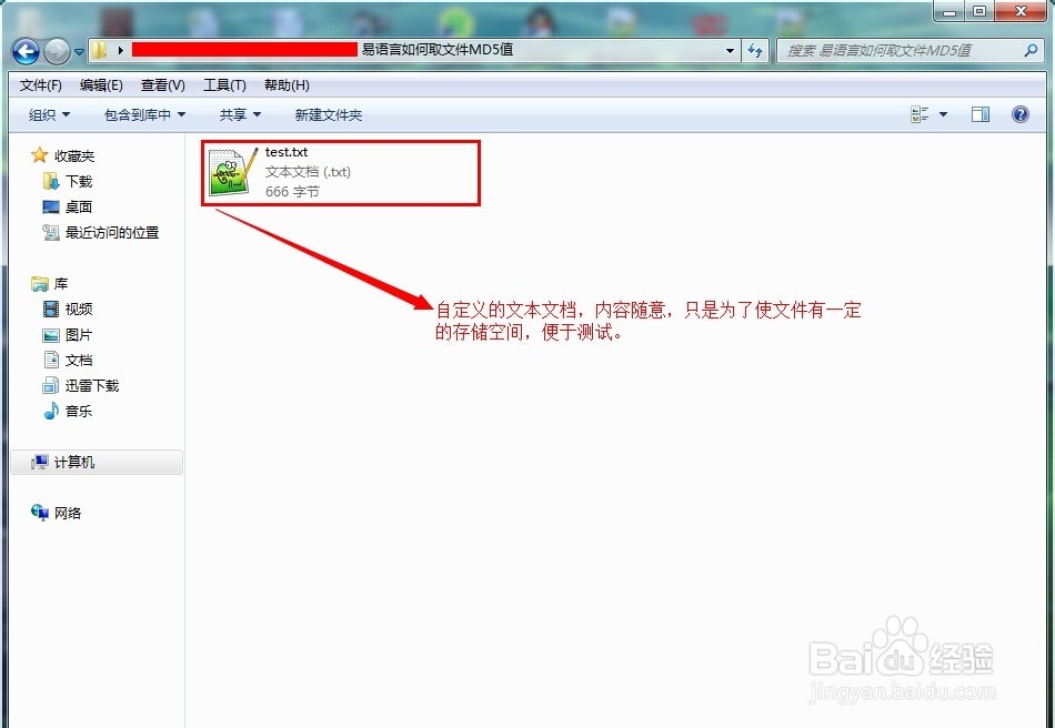 1、首先,准备好任意文件,以便程序测试的时候使用。这里笔者就准备一个txt文本文档(大家可以自己选择)。文档内容随意,主要是为了使文件有一定的存储空间。如图所示: