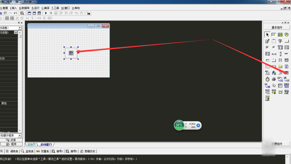 2、将通用对话框和按钮都放置在启动窗口中.
